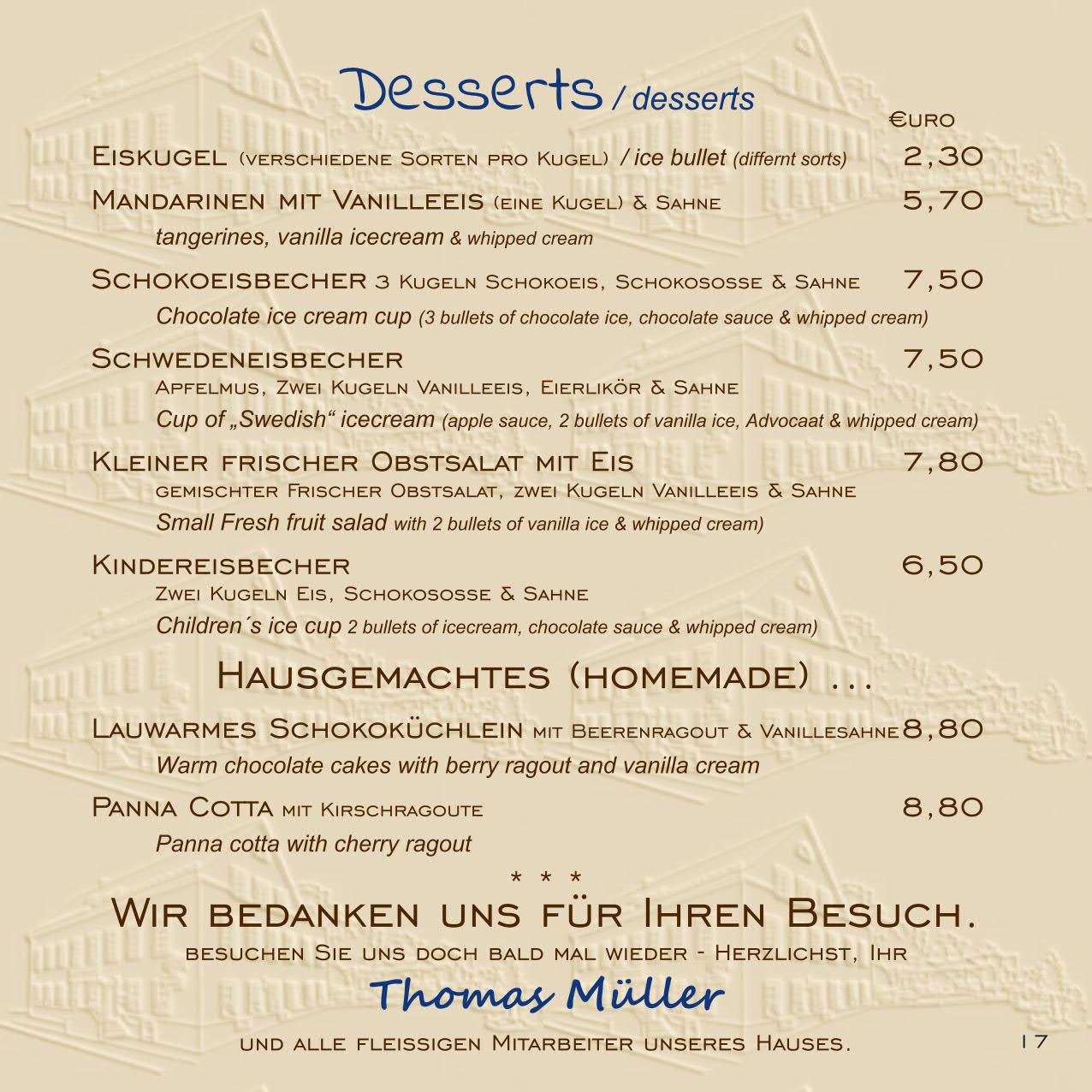 In der Ferienzeit haben wir wochentags einen zusätzlichen flexiblen Ruhetag, aktuelle Informationen finden Sie dazu in unserem Eintrag bei Google.